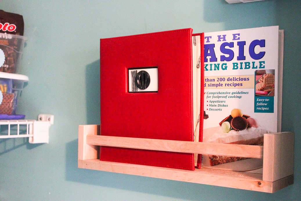 IKEA has these great little spice racks that I am using to hold by recipe books. Of course, they only had one in stock, so I'll have to go again to get the other two that I want :)